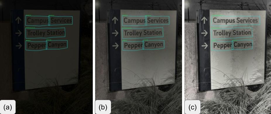 Often images captured in real-world settings like warehouses, shop floors, retail stores, etc. have varying lighting conditions. Many of the industrial robots are deployed in the field to collect data or automate tasks, but a crucial part of achieving this goal is to understand what the robot is looking at. One of the popular applications in warehouse automation space is multi-camera systems intended for data capture. These systems often need to read product labels and require very robust OCR text detection capabilities. OCR suffers several challenges due to the variations in font face, size, background, surface reflectivity, lighting conditions, etc. The small size of text which otherwise an OCR might infer well can become tricky if the image has blur or has low-contrast due to shadows, low-lighting, etc. In this work we employ classical image processing techniques to evaluate how OCR detection and recognition performance is impacted on images with aforementioned artifacts. We create a dataset with a focus on realworld robotics application scenarios discussed above. Additionally we compare the improvements of image processing enhancements with OCR results obtained on a fine-tuned model.