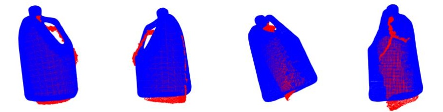 ICP pointcloud matching results for liquid container object.